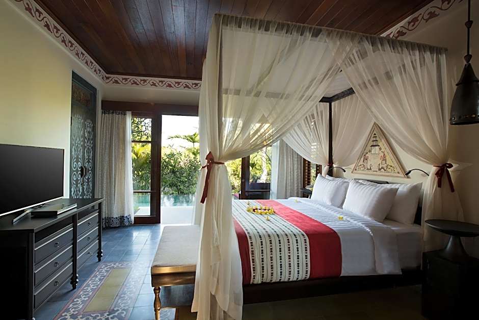 Uma variedade de acomodações inclui vilas e suítes como Vila de 1 Quarto com Piscina e Vista para Jardim, Vila de 2 Quartos com Piscina Privativa, Vila Presidencial e Suíte Real, entre outras. Muitas opções apresentam piscinas privativas, com plantas e disposições projetadas para atender casais, famílias ou grupos maiores que buscam amplo espaço e privacidade.